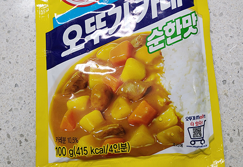 물 200ml에 카레 100g(1개)를 넣고 섞어줍니다. 이때 물을 반절 넣고 섞어주고 또 물을 반절 넣고 섞어 주면 잘 녹아듭니다. 저희 집은 매운 것을 잘 못먹어서 순한 맛을 택했는데 취향에 맞게 맛이나 가루를 선택하면 됩니다.